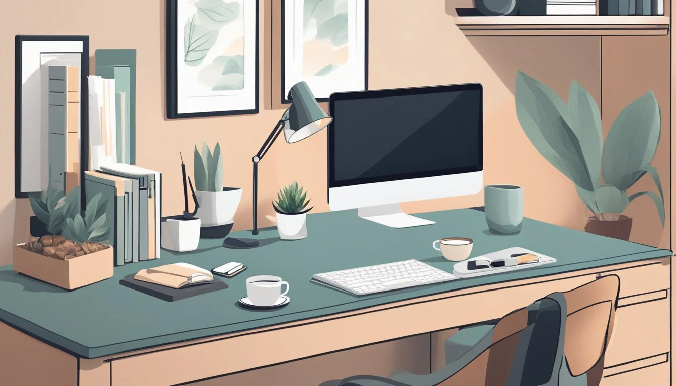 Organize the area to minimize clutter, as a tidy space can reduce mental overwhelm. Invest in storage solutions to keep work materials neatly arranged and easily accessible.